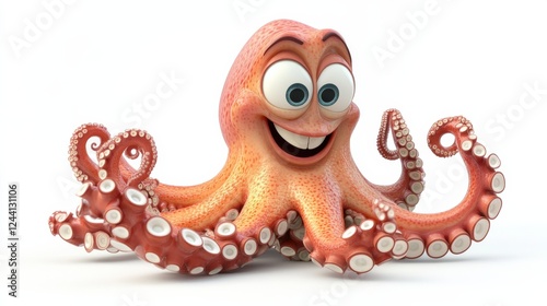 Naklejka premium Cute Cartoon Octopus Character with Big Eyes and Happy Expression