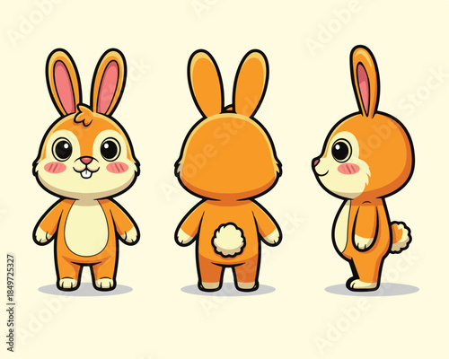 © alifia, Fototapeta premium Cute cartoon orange bunny character front back and side view.
