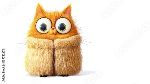 © Erisna Yolanda, Obraz premium Cute cartoon orange cat wearing a fluffy coat