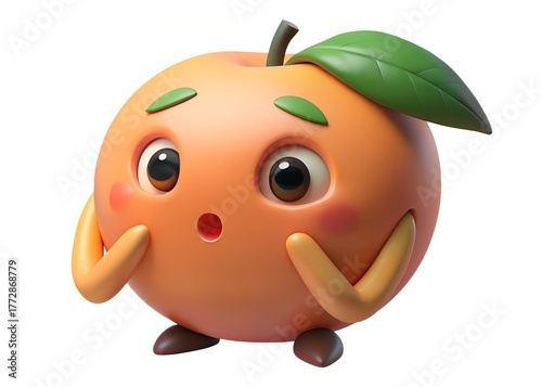 © RAHELA, Fototapeta premium Cute cartoon orange character with big eyes and blush cheeks looking surprised and worried