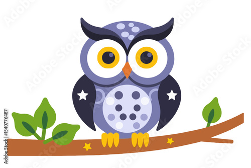 Obraz premium Cute Cartoon Owl on Branch-Vector Illustration for Kids-Educational Owl Art-Whimsical Animal Design-Children's Room Decor-Adorable Owl Clipart