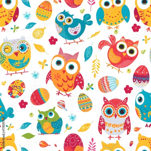 © Sagar, Fototapeta premium Cute cartoon owl seamless pattern, colorful, lovely and funny