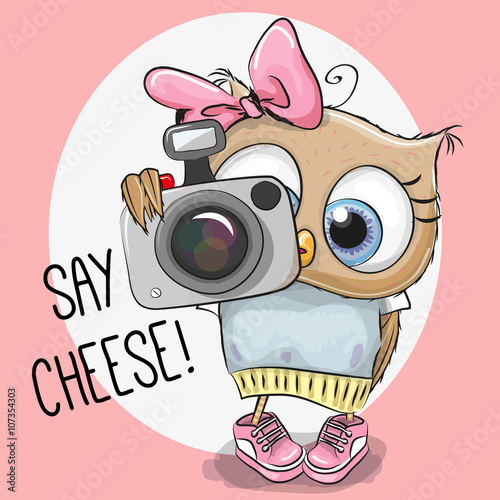 © reginast777, Fototapeta premium Cute cartoon Owl with a camera