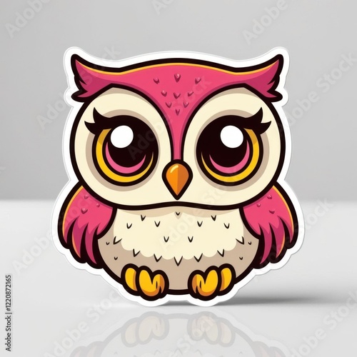 © Pimpisa, Fototapeta premium Cute cartoon owl with big eyes and pink feathers, perfect for children's designs and playful themes.