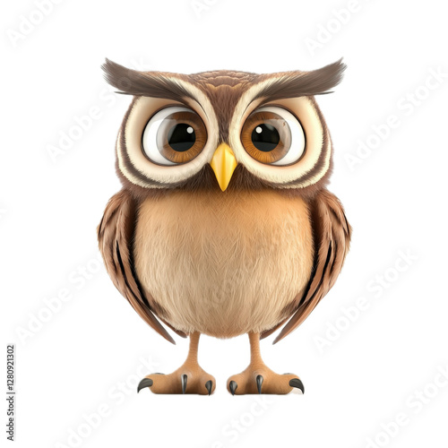 Fototapeta premium Cute Cartoon Owl with Big Eyes and Soft Feathers