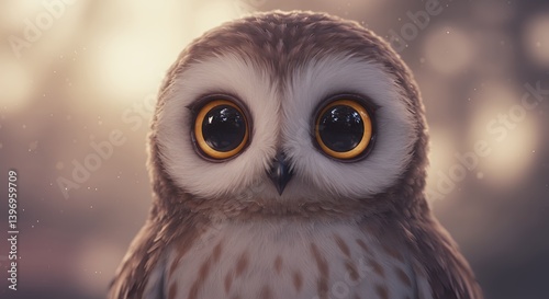 © Admint, Obraz premium Cute Cartoon Owl with Big Eyes on Pastel Background
