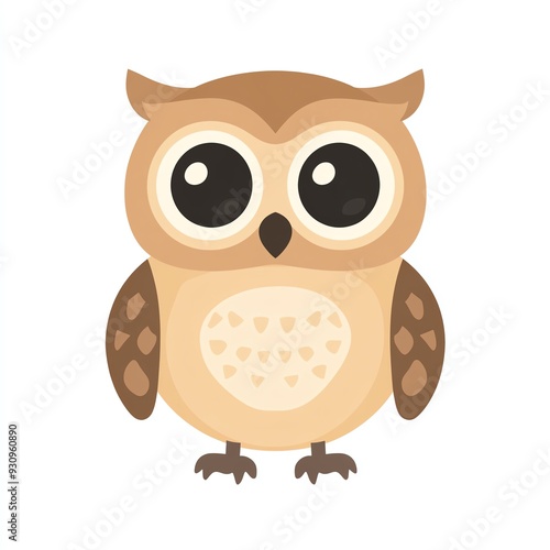 Fototapeta premium Cute cartoon owl with big eyes, perfect for children's illustrations, educational materials, and animal-themed designs.