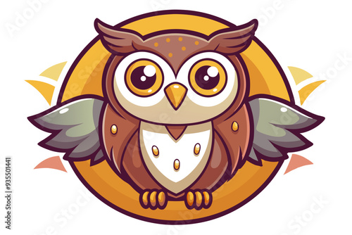 © cihuy, Fototapeta premium Cute Cartoon Owl with Large Eyes and Spread Wings