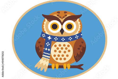 © qtann, Fototapeta premium Cute Cartoon Owl with Scarf Illustration-Owl on Branch Art-Fun Educational Owl Design-Whimsical Owl Character for Kids Projects-Illustration of KSEQA IZZLIA CALIYA