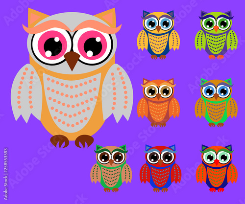 Fototapeta premium Cute cartoon owls set for baby showers, birthdays and invitation designs