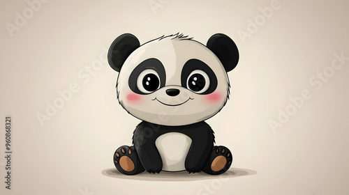 Obraz premium Cute Cartoon Panda Bear Sitting