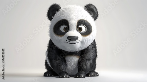 Fototapeta premium Cute Cartoon Panda Bear Sitting on White Background