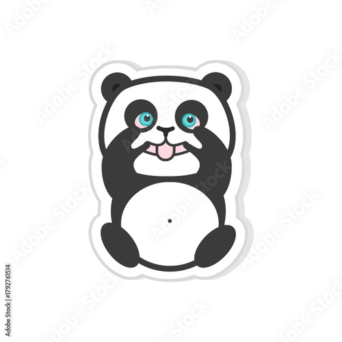 Naklejka premium Cute Cartoon Panda Bear Sitting with Playful Expression and Blue Eyes, Adorable Sticker Design