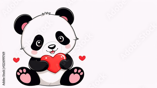 Naklejka premium Cute cartoon Panda holding a heart, cute bear, funny animal