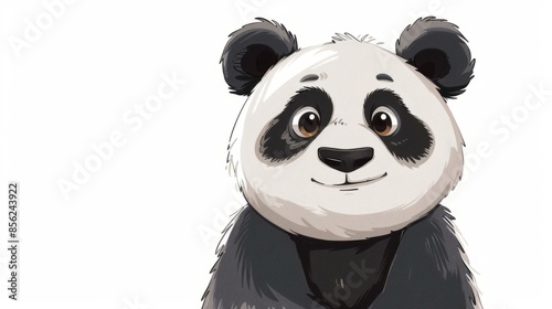 © Lull, Naklejka premium Cute cartoon panda on white background. Adorable cartoon panda illustration with a sweet expression, perfect for children's designs, wildlife projects, or any project needing a touch of charm.