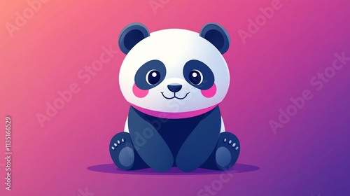 Fototapeta premium Cute cartoon panda sitting against a gradient background.
