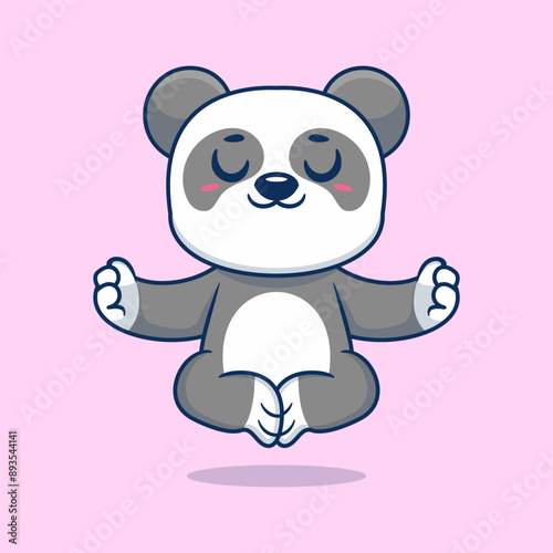 © Widatul, Fototapeta premium Cute cartoon panda sitting in yoga pose. cartoon animal vector illustration hand drawn