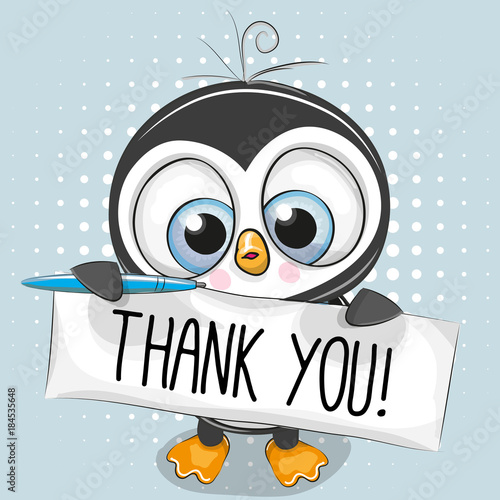© reginast777, Obraz premium Cute cartoon Penguin Boy with plaque