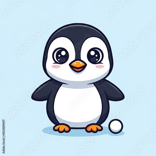 Obraz premium Cute Cartoon Penguin Character with Big Eyes Standing on Light Blue Background