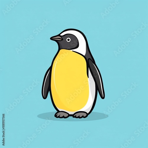 Fototapeta premium Cute Cartoon Penguin on Solid Color Background