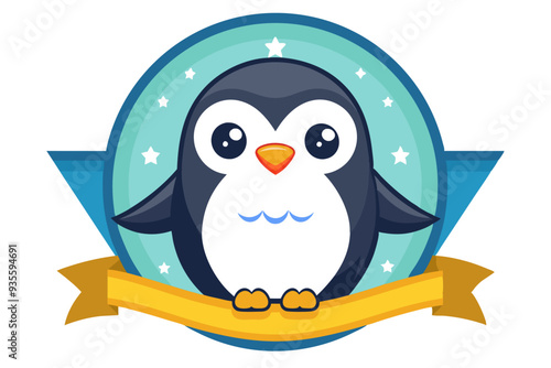 © cihuy, Naklejka premium Cute Cartoon Penguin with a Yellow Ribbon