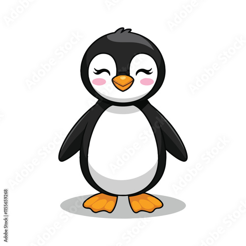 © Rakib, Fototapeta premium Cute Cartoon Penguin with Black Body White Patches Yellow Feet and Beak Happy Expression Design