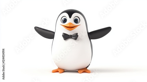 Fototapeta premium Cute Cartoon Penguin with Bowtie and Joyful Expression in Studio