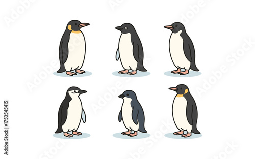 Fototapeta premium Cute cartoon penguins: six adorable penguins with unique expressions and poses