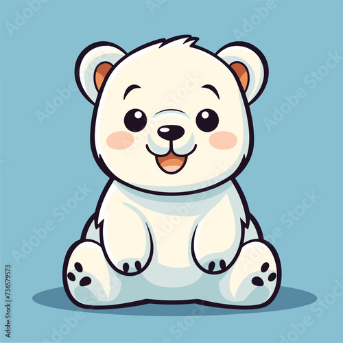 © viklyaha, Naklejka premium Cute cartoon polar bear sitting on blue background. Vector illustration.