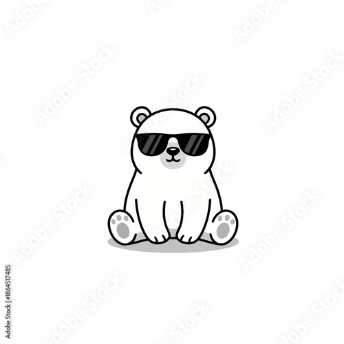 © Logo, Obraz premium Cute cartoon polar bear wearing sunglasses sitting.