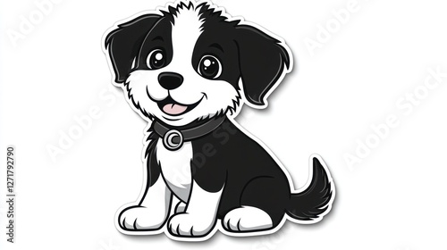 © Mufarokah, Obraz premium Cute cartoon puppy sticker, sitting, happy expression, for merchandise