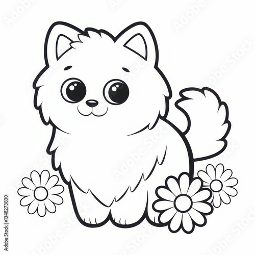 © Thanaporn, Fototapeta premium Cute cartoon puppy surrounded by daisies whimsical art playful theme creative environment childlike perspective