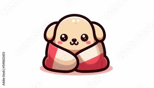 Obraz premium Cute Cartoon Puppy Wrapped in a Blanket