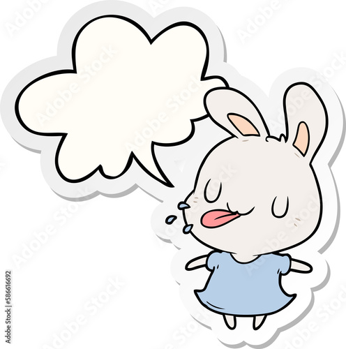 Obraz premium cute cartoon rabbit blowing raspberry and speech bubble sticker