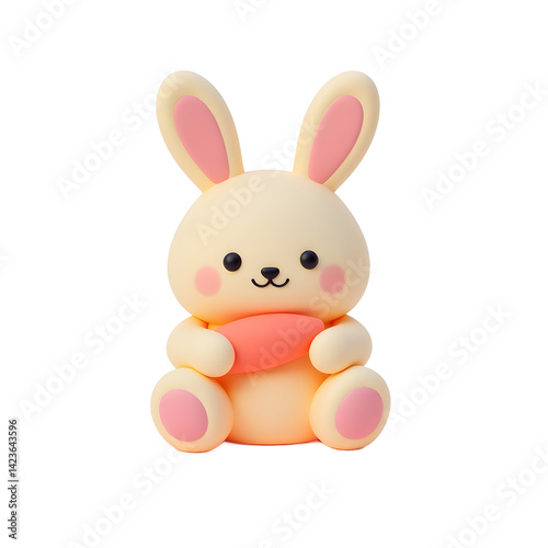 Obraz premium Cute Cartoon Rabbit Holding Carrot Toy on Isolated White Background