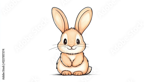 Obraz premium Cute cartoon rabbit sitting happily with big ears and a friendly expression on a white background