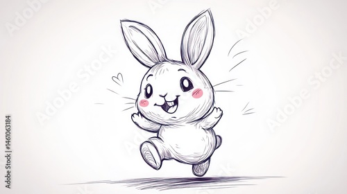 Fototapeta premium Cute cartoon rabbit sketch, playful, happy expression