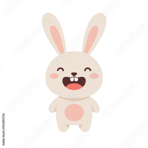 Obraz premium Cute cartoon rabbit with a joyful expression, set against a simple white background