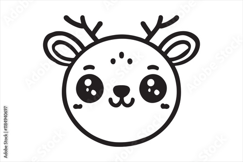 © SKShagor, Fototapeta premium Cute cartoon reindeer face line art