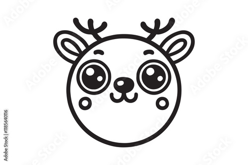 Fototapeta premium Cute cartoon reindeer face line art