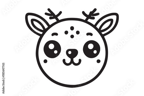 Fototapeta premium Cute cartoon reindeer face line art