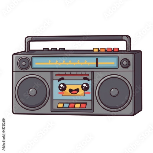 Fototapeta premium Cute Cartoon Retro Boombox with Smiley Face