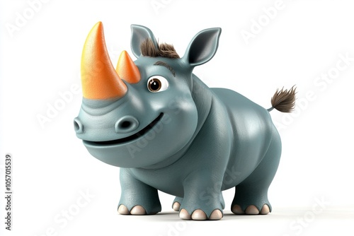 © kriengsak, Fototapeta premium Cute Cartoon Rhino Character 3D Illustration