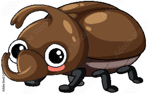 Obraz premium Cute Cartoon Rhinoceros Beetle Vector Illustration Isolated on White Background