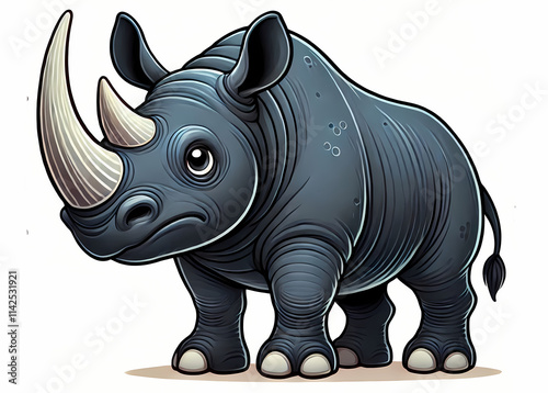 © ARSHDEEP, Fototapeta premium Cute cartoon rhinoceros character with a big horn and expressive eyes.