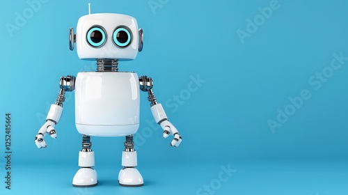 Fototapeta premium Cute Cartoon Robot Character with Friendly Expression on Blue Background