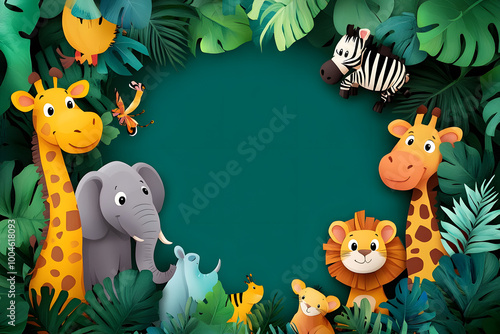 © john, Naklejka premium Cute cartoon safari animal frame border on background for kids.
