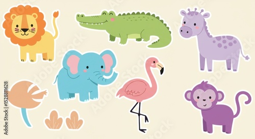 Obraz premium Cute Cartoon Safari Animals Sticker Collection