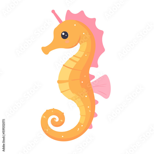 Fototapeta premium Cute cartoon seahorse character in orange and pink with a curled tail and...