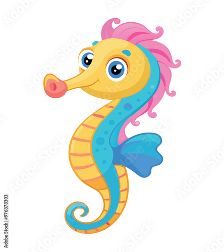 © frrlbt, Fototapeta premium Cute cartoon seahorse smiling and posing underwater